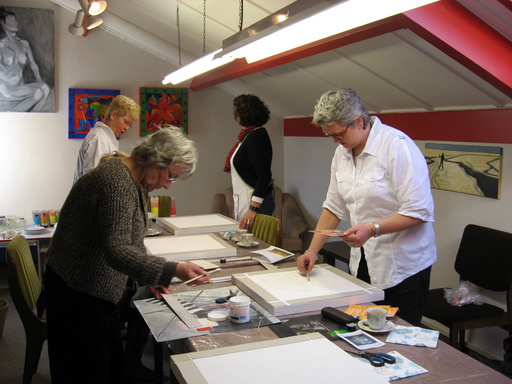 De schilderworkshops geef ik samen met mijn studiegenoot Elly Kramer.
