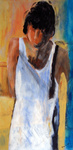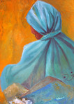 2006Gesluierde vrouw met in de verte een klein dorpje